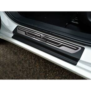 Descanso + Soleira Aço Inox Sandero 2020 Preto Alto Relevo