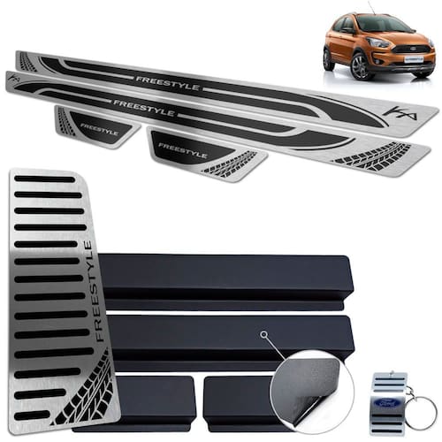 Descanso + Soleira Inox Ford Ka Freestyle Preto Alto Relevo