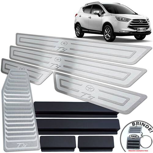 Descanso + Soleira Jac T5 2016 A 2019 Prata Alto Relevo