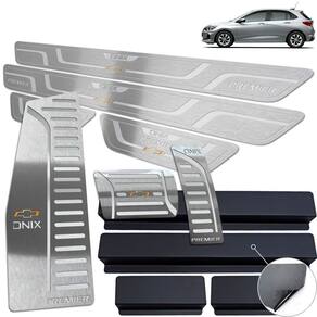 Fabricado em aço inox 304 o kit soleiras, vinil, pedaleiras e descanso de pé além de ajudar a proteger o local onde há o desgaste devido o calçado ficar o tempo todo esfregando, deixará o interior do veículo personalizado e com muito mais estilo.
