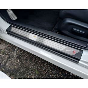 Fabricado em aço inox 304 o kit soleiras, vinil, pedaleiras e descanso de pé além de ajudar a proteger o local onde há o desgaste devido o calçado ficar o tempo todo esfregando, deixará o interior do veículo personalizado e com muito mais estilo.