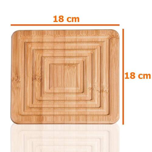 Especificações técnicas: Mais ecológico;- produzida em 100% bambu;- combina com diferentes tipos de decoração;- material bamboo peso e medidas:- altura= 2 cm- largura = 18 cm- comprimento = 18 cm- peso = 0,600 gramas conteúdo da embalagem:- 01 jogo de apoio bamboo com 2 unidades Marca: Não Informado