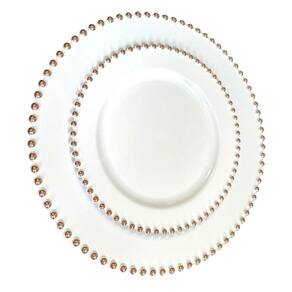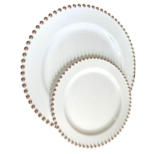 Pratos refeição descartáveis luxo rose borda bolinhas rose 6 unid. Prato de natal réveillon jantar, almoço ou petiscos + 6 pratos de sobremesa Branco com detalhes nas bordas rose