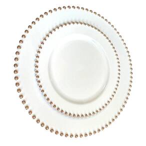 Pratos refeição descartáveis luxo rose borda bolinhas rose 12 unid. Prato de natal réveillon jantar, almoço ou petiscos + 12 pratos de sobremesa Branco com detalhes nas bordas rose