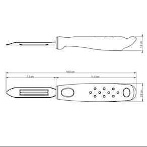Garantia: 90 dias / Peso: 40g / Cor predominante: preto / Referência: 7891112106345; Dimensões: 18,6cm (C) x 2,6cm (L) x 1,9cm (A); Materiais: aço inox com Cabo de Polipropileno