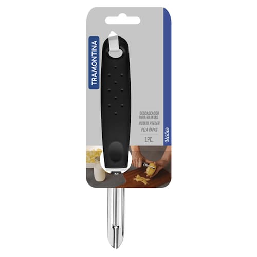 - Utensílio com lâmina de aço inox que proporcionam resistência durante o uso.- O cabo de polipropileno possui furo passante possibilitando que seja pendurado na sua cozinha.- Pode ir à máquina de lavar louças facilitando seu dia a dia.Contém:01 Descascador de Batatas Manual Tramontina Utilitá em Aço Inox com Cabo de Polipropileno Preto