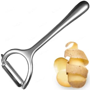 O Descascador de legumes em Liga de zinco é perfeito para o seu dia a dia culinário. É uma ferramenta resistente e com alta durabilidade, para cascas de legumes grossas, a lâmina de metal é de alta qualidade evitando que o descascador enferruja, durável e anticorrosivo, pode ser lavado na lava-louças e fácil de guardar, totalmente compacto. A lâmina giratória é ultra afiada, pode manter o mínimo de resistência ao descascar, e se ajusta perfeitamente à pele dos legumes, não obstrui com descascas e poupa tempo e trabalho.