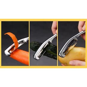 Fabricado em zinco de alta qualidade, garante durabilidade e resistência, evitando corrosão e desgastes com o uso constante. A lâmina afiada proporciona um corte preciso, removendo a casca de forma uniforme, sem desperdiçar o alimento.