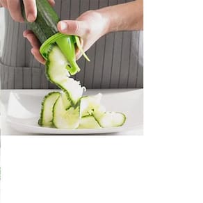 Descascador Espiral De Vegetais E Legumes Espremedor 4 em 1Descrição:O número de horas desperdiçadas na cozinha cortando legumes, frutas e moendo-as por gotas de suco não pode voltar. No entanto, você pode compensar essas horas perdidas no futuro, obtendo-se uma receita de fatiador espiral que combina o poder de fatiar e fazer um suco em uma máquina impressionante. Não mais serão as suas receitas favoritas de fatiador em espiral, seja um tempo a tomar em consideração que este conjunto 4 em 1 permite-lhe obter fatias e sumo em pouco tempo. As três lâminas de aço inoxidável de qualidade premium oferecem o corte em três tamanhos conforme o seu desejo e exigência de uma receita subsequente de fatiadora espiral.Agora você pode cortar fatias em forma de macarrão com a ajuda deste fácil de usar, mas de alta qualidade espiral slicer e juicer set. Não só é fácil de usar, mas mais fácil de limpar, pois as peças plásticas se desmontam facilmente por conveniência. Algumas das características quentes deste conjunto de fatiador em espiral incluem:Criar macarrão e fatias de forma de massa de frutas e legumesProtetor de dedo protege contra qualquer tipo de lesão Os cortes estão disponíveis em 1/8 de polegada, ¼ de polegada e formato de fita A produção de suco foi facilitada com um copo medidor de 15 oz para armazenamento O plástico utilizado é fácil de limpar e livre de BPA, tornando-o eternamente seguro 100% brand new e de alta qualidade Fácil de operar, segura e confiável.  Especificações: Material: Aço Inoxidável Cor: Branco com Verde Indicado para: Frutas, Vegetais e etc. Tamanho: 18cm x 9cm Peso: 230g  Inclui:- Espremedor- Cortador tipo descascador (fitas largas)- Cortador em espiral (tiras finas)- Cortador em espiral (tiras grossas)