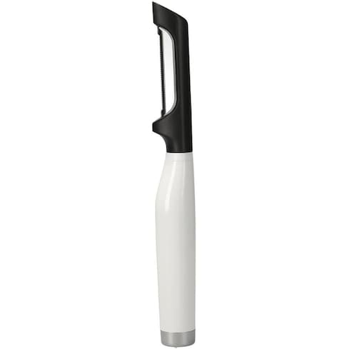 O Descascador Peeler da KitchenAid possui uma lâmina de cabeça giratória construída em aço inoxidável, sendo assim, é resistente à ferrugem.