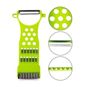 Características principais: - 3 lâminas afiadas; - lâminas em formato de círculo com relevo plástico; - multiuso; - prático; - feito de plástico resistente; - corta, descasca e rala alimentos; - tamanho compacto.