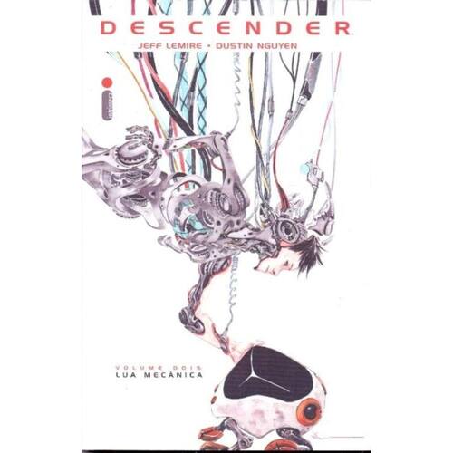 No segundo volume da série vencedora do Eisner Awards, o androide Tim-21 chega a um novo planeta que pode ser exatamente o que ele procurava. Mas nem tudo é o que parece A última lembrança de Tim-21 foi o beijo de boa-noite de sua mãe humana. Ao despertar, dez anos depois, ele se depara com uma realidade aterrorizante. Ao narrar a luta do jovem androide para sobreviver em um mundo que deseja aniquilá-lo, Jeff Lemire, criador de Black Hammer, e Dustin Nguyen deram vida a Descender, um épico comovente e apaixonante que conquistou milhares de fãs e foi agraciado com o Eisner, um dos prêmios mais importantes dos quadrinhos. No segundo volume, Lua Mecânica, que reúne os fascículos de 7 a 11, os autores dão sequência à jornada eletrizante de Tim-21 e seus amigos. Novas alianças se formam, antigas ameaças se fortalecem, e a chegada do robô a um lugar misterioso pode mudar drasticamente o destino da galáxia. No passado, robôs gigantes conhecidos como Ceifadores destruíram planetas e civilizações, criando nos que restaram uma aversão às máquinas. Desde então, foram implementadas políticas de perseguição e extermínio de robôs. Essa caça implacável põe em risco a vida de Tim-21, que pode conter em seu código vestígios dos assassinos do passado, o que faz dele o ser mais procurado do universo. Mas talvez ele não seja o único. Ao lado dos amigos, ele percorre planetas e galáxias, desviando de inimagináveis perigos para tentar sobreviver. Quando chega a um novo planeta, percebe que esse lugar surpreendente pode ser o que ele tanto procura: um lar. Mas será que é mesmo seguro Arrebatadora, a série Descender é uma odisseia cósmica que discute temas como família, amizade, intolerância e a relação muitas vezes conflituosa entre humanos e tecnologia. Sucesso de público e crítica, teve os direitos de adaptação para o cinema adquiridos pela Sony Pictures e para a TV pela NBCUniversal International Studios.