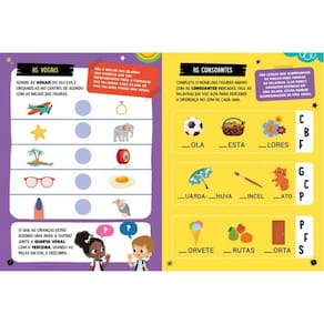Usando as letras do alfabeto, que são compostas por vogais e consoantes, podemos fazer várias combinações de sílabas, formando inúmeras palavras. Mas o que são vogais? E consoantes? E sílabas? Com as atividades propostas aqui e as letras em EVA que acompanham este livro, você aprenderá o alfabeto e formará muitas palavras. Vamos lá?
