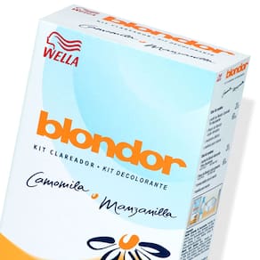 DESCOLORANTE BLONDOR Blondor Camomila é o clareador ideal para fazer descoloração dos cabelos de forma rápida e prática , deixando um suave perfume de camomila. É indispensável fazer a prova de toque/ sensibilidade e o teste de mechas antes do uso deste produto. O Pó Descolorante Blondor é a escolha certa de quem quer descolorir os cabelos de forma prática e rápida deixando um suave perfume de camomila. Descolore rapidamente os cabelos, oferece comodidade na aplicação. O Pó Descolorante Blondor possui em sua formulação a camomila que auxilia no clareamento dos cabelos, não danifica os cabelos sendo que ao mesmo tempo em que descolore auxilia na hidratação. 1- Aplique sobre os cabelos secos, não lavados e desembaraçados. Inicie a aplicação pela nuca e controle o clareamento a partir da primeira mecha aplicada. Retoque: No caso de retoque das raízes, ou se utilizou outros produtos clareadores, aplique somente na parte crescida dos cabelos e controle o clareamento para ficar próximo ao tom do comprimento e pontas. 2- Deixe agir de 10 a 30 minutos conforme a estrutura dos cabelos e grau de clareamento desejado. Não se exponha ao sol durante a aplicação e nem cubra os cabelos com touca. 3- Enxague bem com água morna e em seguida lave os cabelos com shampoo e condicionadores Wella para garantir melhores resultados de hidratação. Se o seu cabelo for longo ou volumoso, recomendamos utilizar mais de um Kit de Blondor Camomila.