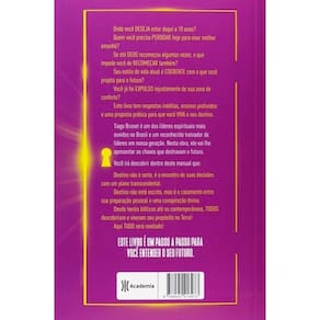 Título Do Livro: Descubra o seu destino Subtítulo Do Livro: As chaves que abrem as portas para o seu destino Autor: Brunet, Tiago Idioma: Português Editora Do Livro: Editora Planeta do Brasil Ltda. Capa Do Livro: Mole Ano De Publicação: 2018 Quantidade De Páginas: 192 Altura: 210 mm Largura: 140 mm Peso: 200 g Com Páginas Para Colorir: Não Com Realidade Aumentada: Não Gênero Do Livro: Autoajuda Subgêneros Do Livro: Psicologia Tipo De Narração: Conto Idade Mínima Recomendada: 18 anos Data De Publicação: 02-10-2018