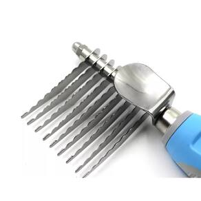Possui 9 lâminas retas serrilhadas de aço inox;