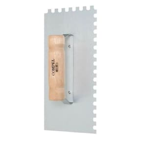 Especificações do Produto: Desempenadeira de aço dentada, banhada em verniz anti oxidação. Medidas 12cm x 25,5cm Cabo de Madeira tratada anatômico Indicações: Ideal para aplicação de argamassas,massa corrida,texturas entre outros. Auxilia também na preparação e no nivelamento de superfícies. Proporciona facilidade e conforto na execução dos serviços. MARCA: COMPEL 12 Ean: 7897613524015