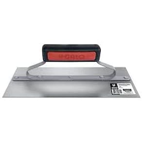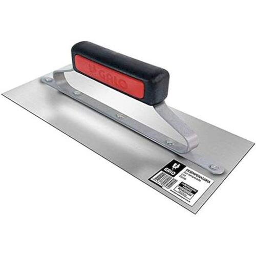 Desempenadeira de aço 5 rebites ou cravos. Especial para gesseiros, pois foram produzidas especialmente para atender as necessidades da preparação de superfícies coo acartonados, placas de forro e acabamento com gesso em alvenaria. O cabo em polipropileno permite uma melhor pegada, mais segurança e conforto na aplicação. O zinco e a tempera aplicados na chapa de aço protegem a ferramenta contra a oxidação.