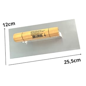 ATENÇÃO: As cores dos produtos podem sofrer variações em função das características do monitor. Desempenadeira de aço Lisa, banhada em verniz Anti oxidação.Medidas 12cm x 25,5cmCabo de Madeira tratada anatômico Indicações:Ideal para aplicação de argamassas, massa corrida, texturas entre outros.Auxilia também na preparação e no nivelamento de superfícies.Proporciona facilidade e conforto na execução dos serviços. Característica da EmbalagemCód. de Barras do Produto: 78976135 2402 - 2Limpeza e Conservação:Logo após o uso, retirar os resíduos do produto utilizado e lavar a desempenadeira em água corrente.secar e, se possível, aplicar uma fina camada de óleo protetivo.Guardar em local seco e arejado. E cores podem variar daqueles representados na embalagem.