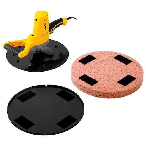 Possui base com diâmetro de 370 mm, garantindo a uniformidade da superfície. Conta ainda com variador de velocidade e prato plástico com sistema fixa fácil, proporcionando maior desempenho e agilidade nos trabalhos. Além de punho emborrachado com formato ergonômico e motor com dupla isolação, garantindo maior conforto e segurança ao operador.