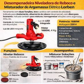 Com um potente motor de 1680W e 6 níveis de velocidade, você tem o controle total sobre a aplicação, seja no alisamento fino, no lixamento de superfícies ou na mistura de argamassas e tintas. O diâmetro de 390mm do disco permite cobrir grandes áreas rapidamente, enquanto o design ergonômico com alças duplas proporciona conforto e estabilidade durante o manuseio prolongado, reduzindo a fadiga do operador.
