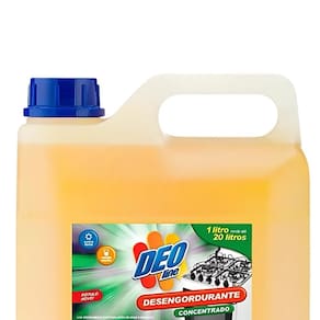 Desengordurante Concentrado Remoção de Gorduras Deoline Volume: 5 Litros Desengordurante Concentrado Deoline 5 Litros O Deoline Desengordurante Concentrado é a solução ideal para a remoção eficaz de gorduras impregnadas em diversas superfícies. Com alto poder de desengordurante, é especialmente indicado para limpeza pesada de pisos, paredes, bancadas, coifas, mesas, equipamentos e utensílios de cozinha, tanto em ambientes domésticos quanto industriais. Sua fórmula concentrada proporciona um excelente desempenho na remoção das gorduras mais difíceis, garantindo um ambiente limpo e higienizado. Características principais: Produto desengordurante concentrado de alta performance Ideal para limpeza de pisos, paredes, bancadas, coifas, mesas e utensílios de cozinha Indicado para cozinhas domésticas e industriais, restaurantes, bares, lanchonetes, entre outros Remove até as gorduras mais difíceis Produto concentrado, garantindo maior economia Indicações e modo de uso: Campo de aplicação: Pode ser em cozinhas profissionais e domésticas Modo de uso: Dilua o produto conforme a tabela de diluição abaixo Para limpeza leve, use 45 ml para 1 litro de água Para limpeza geral, use 90 ml para 1 litro de água Para limpeza pesada, use 180 ml para 1 litro de água Aplique o produto diluído na superfície a ser desengordurada e esfregue com uma esponja de limpeza Enxágue bem a superfície e deixe secar Não estocar solução diluída Tabela de Diluição: Limpeza Leve: 45 ml para 1 litro de água Limpeza Geral: 90 ml para 1 litro de água Limpeza Pesada: 180 ml para 1 litro de água Informações do produto: Volume: 5 Litros Código interno: 90201 - 5L Aplicação: Remoção de gordura impregnada de superfícies em geral Marca: Não Informado