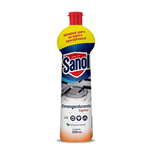 Desengordurante sanol squeeze 500ml Ação desengordurante que oferece limpeza imbatível para sua cozinha. Remove até 100% da gordura em condição testada. Ideal para superfícies como: fogões, fornos, azulejos, esmaltados, fórmica, inox, cerâmica, pias, micro-ondas, exaustores e outras superfícies laváveis. Capaz de remover sujeiras como: gordura de carne, gordura vegetal, óleos, poeira, molho de tomate, café, calda de sorvete, graxa, óleo de motor, gordura queimada. Produto registrado; revendedor direto da indústria. Qualidade e satisfação garantidas. Para instruções de uso, verifique as informações no rótulo do produto. Água - pode faltar, não desperdice. Não descartar a embalagem em rios, lagos e vias públicas. Atentar-se ao símbolo de descarte correto. Não ingerir o produto. Ean: 7896183314675