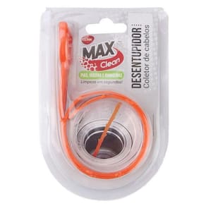 Desentupidor coletor cabelo limpeza pia duchas banheira ralo Desentupidor coletor de cabelos / pelos max clean cor: laranja composição: plastico pp Coletor, utilizados em ralos para evitar o entupimento proveniente da queda de cabelos. Cerdas que se prendem ao cabelo para evitar entupimentos. Uma solução prática e higiênica. Instala sem remover a tampa do ralo. Baixa manutenção: substitua a cada 2-5 meses. Universal: compatível com a maioria dos ralos. Higiênico: elimine sem tocar no cabelo Serve para ralos de box, pias, banheiras, etc.O coletor possui 51cm de comprimento.