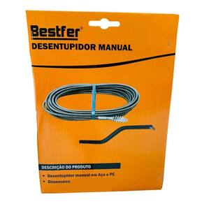 Desentupidor Manual 5m Mola de Aço 5 Metros Ralo Pia Cano Calha Bestfer BFH2299 Desentupidor Manual 5 Metros Bestfer