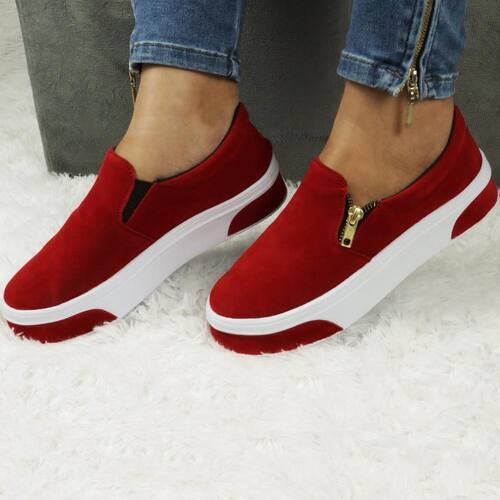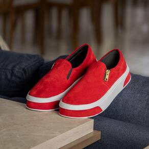Desfile em Estilo com o Slip On Feminino em Camurça e Solado Com Tiras - 38 - Vermelho