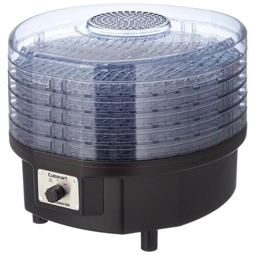 O desidratador de alimentos Cuisinart facilita a criação de lanches nutritivos, deliciosos e secos, como carne seca, enrolamentos de frutas e batatas fritas vegetarianas. Ele preserva os alimentos naturalmente, sem aditivos ou conservantes. Uma poderosa ventoinha motorizada de 620 watts possui uma ventilação superior que permite que o calor circule de maneira uniforme e eficiente, para secagem mais rápida e excelentes resultados. Um termostato ajustável permite temperaturas diferentes, dependendo do tipo de alimento que está sendo seco. Com amplo espaço para acomodar grandes quantidades de alimentos, o desidratador possui cinco bandejas que se encaixam umas sobre as outras para facilitar a colocação. As opções para este aparelho são infinitas, incluindo ervas secas, peixe seco, batatas fritas, iogurte, guloseimas para cães até flores secas para pot pourri Ajuda a economizar dinheiro e evita o desperdício de alimentos. Características Cinco racks intertraváveis empilháveis 0,356 metros quadrados de área de superfície desidratante Sistema de ventilação superior 620 watts de potência Termostato ajustável Ventilador Lo Médio Alto Folha de enrolamento de frutas incluída Ótimo para frutos secos e ervas secos racks disponíveis empilham até 9 de uma vez DHR30RACK Sem BPA