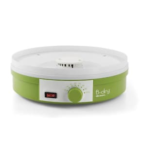 O desidratador de Alimentos B-Dry, desidrata frutas, legumes, cogumelos, ervas, carne etc, com temperatura ajustável de 35C a 70C e uma distribuição uniforme do calor em suas 5 bandejas intercambiáveis com tampa livre de bisfenol (BPA Free).