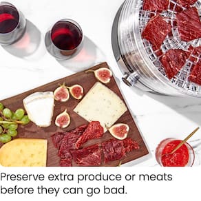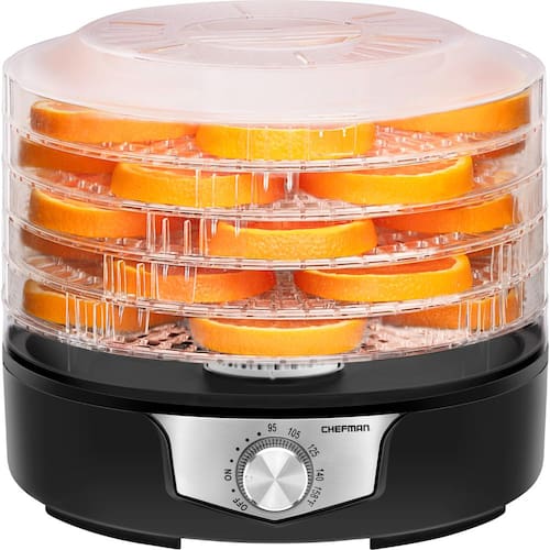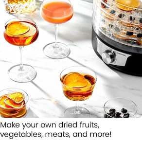 ConjuntoChefman Desidratador de alimentos com 5 bandejas, bandejas transparentes de 28 cm, controle de temperatura ajustável, cria lanches secos para a família, prepare frutas, carne seca, legumes, carnes e - Desidrate seus ingredientes favoritos: desidrate frutas, legumes, carnes e ervas para pratos saudáveis e únicos. Crie lanches ou acompanhamentos salgados para o seu próximo jantar ou festa em família. - CONTROLE DE TEMPERATURA AJUSTÁVEL: Desidrate facilmente sua comida com o mostrador de controle de temperatura ajustável. Defina sua temperatura até 185 F para alimentos feitos do seu jeito. - Bandejas versáteis: as bandejas espaçosas de 29 cm podem caber suas frutas, vegetais e carnes facilmente. Com alturas variáveis da bandeja e um design transparente conveniente, você pode facilmente posicionar as cinco bandejas e ver seus ingredientes. - Fácil de limpar: as bandejas e o visor preto e de aço inoxidável permitem uma limpeza conveniente. Depois de terminar a desidratação, basta limpar o seu aparelho e desfrutar de suas deliciosas guloseimas. - Recursos: aprovado pela CETL com tecnologia de segurança avançada para durabilidade duradoura e garantia de 1 ano fornecida pela Chefman, para que você possa comprar sem preocupações - nós protegemos. Para obter informações sobre como usar seu produto, role para baixo para obter um Guia do usuário em PDF. 350 Watts/120 Volts – RJ43-ROB-5