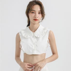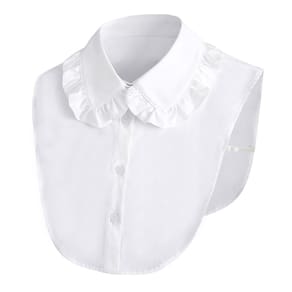 Gola falsa, gola removível, babado branco, borda de pétala, camisa meio falsa, gola de blusa, elegante gola removível com botões para mulheres e meninas, suéteres e vestidos Material: algodão Tamanho: 18 × 24 × 2 cm Peso: 100 g