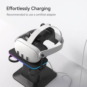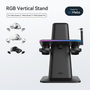 PortátilBase de carregamento com design KIWI para acessórios Meta Oculus Quest 2/Quest 3/Quest Pro, marca oficial da Meta, suporte de carregamento vertical RGB e suporte de controlador — Feito para Meta: o design KIWI participou do programa Made for Meta, e o dock de carregamento RGB é meta-autorizado e compatível com o Meta Oculus Quest 2/Quest 3/Quest Pro. - Carregamento e exibição fáceis: posicione e carregue facilmente o fone de ouvido com um conector magnético, oferecendo um carregamento conveniente e seguro para o Meta Oculus Quest 2/Quest 3/Quest Pro. Dicas: o suporte de carregamento não carrega controladores. - Experiência de jogo distinta: explore uma ampla variedade de 16 luzes RGB ambientes multicoloridas e adorne seu quarto com uma decoração chique. - Design vertical elegante: a estação de carregamento ocupa um espaço mínimo, fornecendo uma solução conveniente e organizada para todas as suas necessidades. - Compatibilidade perfeita: o cabo de carregamento magnético flexível, junto com a superfície livre de arranhões na plataforma e nos suportes RGB, se adapta facilmente a vários fones de ouvido e controladores.