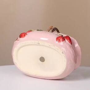 Material: cerâmica Peso: 400 g Tamanho: 14,5 x 9,3 x 7,5 cm Design encantador de cesta de morango — apresenta um vaso de cerâmica rosa em forma de cesta com detalhes vívidos de morango e uma alça em estilo tecido. Construção cerâmica durável — Feita de material cerâmico premium, resistente e respirável, adequada para o crescimento saudável das plantas. Abertura grande prática — Com um tamanho de 14,5x9,3x7,5 cm e peso de 400g, a plantadeira oferece espaço suficiente para suculentas, ervas ou cactos. Estilo rústico e decorativo — Uma deliciosa mistura de arte com temas de frutas e charme campestre, aprimorando a decoração da mesa, do parapeito da janela ou da varanda. Uso versátil — Ideal para colocação interna e externa, adicionando um toque fresco e animado às configurações de casa, escritório, pátio ou jardim.