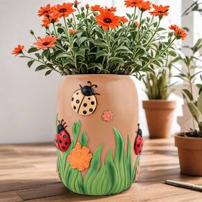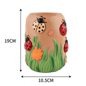Material: resina Peso: 700 g Tamanho: 19 x 10,5 x 19 cm Design encantador de joaninha — Adorável vaso de desenho animado decorado com detalhes coloridos de joaninhas, flores e grama, adicionando um toque animado e alegre a qualquer espaço. Resina de alta qualidade — Feita de material de resina durável, esta plantadeira é robusta, leve e resistente ao desbotamento, tornando-a adequada para uso interno e externo. Tamanho prático — Medindo 19x10,5 x 19 cm, este vaso é perfeito para suculentas, cactos, ervas e pequenas plantas verdes, cabendo bem em mesas, prateleiras, varandas ou pátios. Decoração versátil — Vaso decorativo para casa, escritório, varanda, jardim, parapeito de janela ou pátio, criando uma atmosfera fresca e divertida. Criativo e divertido — O lindo design de vaso de flores com tema de insetos combina função e decoração, tornando-o um toque atraente para exibição sazonal ou durante todo o ano.