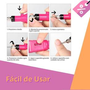Designe Profissional: Lixadeira De Unha Elétrica Motor Bivolt em Destaque Para unhas Naturais, unhas de porcelana, gel ou acrygel; Pode ser usada nas unhas naturais com a opção de baixa rotação Sem esforço, sem segredo, e muito fácil de usar, Proporciona ótimo acabamento e qualidade profissional nas unhas postiças.