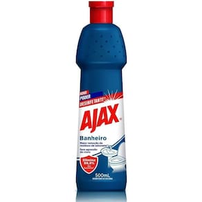 O Limpador Ajax banheiro tem um poder desinfetante que elimina 99,9% das bactérias Salmonella choleraesuis e Staphylococcus aureuse (seguindo as instruções de uso) e oferece uma maior remoção de resíduos de sabonete (em comparação com água sanitária), sem a agressão do cloro, para uma desinfecção e limpeza de banheiros especializadas.