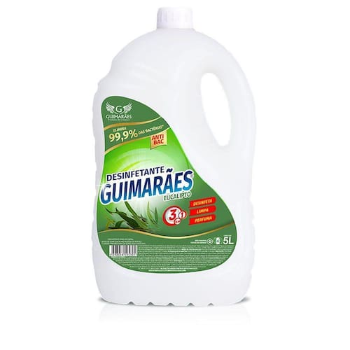 Com sua embalagem de 5 litros, o Desinfetante Eucalipto Guimarães oferece um excelente custo-benefício, garantindo um longo período de uso.