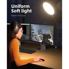 - ?Chave giratória de 360°?O anel de luz para mesa pode girar 360° em qualquer ângulo para direção da luz, lâmpada de mesa com grampo adequada para o seu trabalho em diferentes posições na área de trabalho conforme você precisa, como luz de mesa, luz de laptop, luz de webcam, luz de computador etc