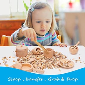 Desminsi Sensory Bin Tools - Montessori Fine Motor Skills Aprendendo Brinquedos Waldorf para crianças e crianças Simula brincar - colheres de madeira e pinças para trabalho de transferência e aprendizagem motora fina (11Pcs)