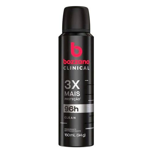 O Desodorante Aerosol Bozzano Clinical Clean garante 3 vezes mais proteção e até até 96 horas de duração, graças a sua tecnologia total controle. Conta com um fragrância moderna e refrescante que oferece proteção com ação antitranspirante e desodorante para homens confiantes que não abrem mão da segurança e conforto no dia a dia. Testado dermatologicamente, o antitranspirante não possui álcool em sua fórmula.