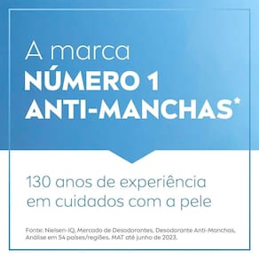 Precauções: Usar somente nas axilas. Não usar se a pele estiver irritada ou lesionada. Caso ocorra irritação e/ou prurido no local da aplicação, suspender o uso imediatamente e procurar orientação médica. Evite a inalação deste produto. Em caso de funcionamento anormal da válvulva, vire o frasco para baixo e agite bem. Proteger os olhos durante a aplicação.