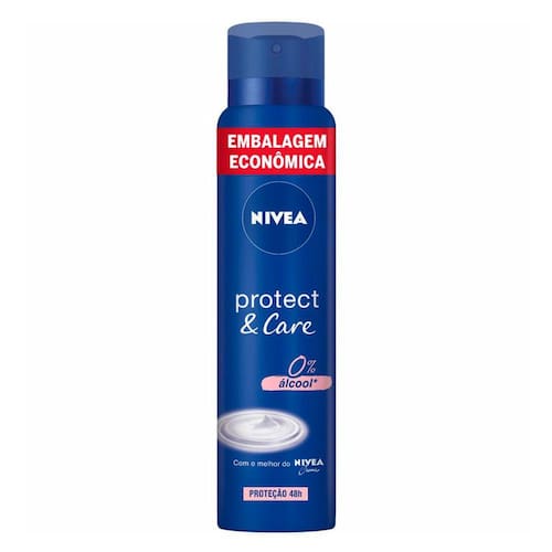 O Desodorante Aerosol Nívea Protect & Care possui uma tecnologia diferenciada inovadora hidratante e proteção contra transpirações excessivas. Desenvolvido com a mesma fórmula e perfume do mais famoso creme Nívea. Garante uma hidratação intensificada nas axilas prevenindo manchas e mau odor causada pela proliferação de bactérias e a transpiração. O Desodorante Aerosol Nívea Protect & Care é um antitranspirante de ótima qualidade promove total segurança e comodidade, além de uma sensação de banho tomado e refrescância durante todo o dia.