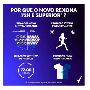 A missão de Rexona é entender cada vez mais sobre a transpiração. O que aprendemos reflete no aperfeiçoamento e na inovação de todos os produtos da marca Rexona, buscando oferecer sempre os melhores produtos. Toda a linha de desodorantes antitranspirantes Rexona foi desenvolvida com uma tecnologia de ponta para que você possa fazer mais e enfrentar os desafios do dia a dia.