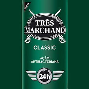 Sobre a marca: A Tres Marchand é uma marca tradicional da higiene masculina, com produtos de alta qualidade e fragrâncias de Perfumaria Fina, há mais de 20 anos vem oferecendo com seus desodorantes, proteção da pele evitando odores desagradáveis causados pelo suor.