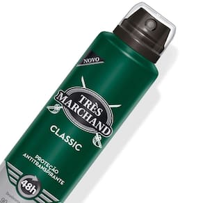 O Desodorante Aerosol Tres Marchand Classic foi especialmente desenvolvido com notas Cítricas, com um leve toque amadeirado destacando assim personalidade masculina. Sua Fórmula proporciona 48 horas de proteção, deixando uma sensação de segurança e bem estar durante o dia, Além de possuir Fórmula antitranspirante.