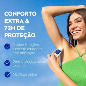 Desodorante antitranspirante roll-on nivea derma control def Nome desodorante antitranspirante roll-on nivea derma control defende feminino 72h 50ml Titulo desodorante antitranspirante roll-on nivea derma control defende feminino 72h 50ml Marca nivea Cor branco Familia-da-cor branco Tamanho 50 ml Ingredient-list pró-vitamina b5 Modelo desodorante roll-on Material liquido Desodorante antitranspirante roll-on nivea derma control defende feminino 72h 50mlo que é e para que serve o desodorante antitranspirante roll-on nivea derma control defende femininoO desodorante antitranspirante roll-on nivea derma control defende é um antitranspirante desenvolvido para oferecer proteção intensa contra o suor e o mau odor, ao mesmo tempo em que cuida da pele das axilas. Sua fórmula contém ácido hialurônico puro e pró-vitamina b5, proporcionando hidratação e conforto, especialmente para peles sensíveis ou recém-depiladas.Benefícios e diferenciais do desodorante antitranspirante roll-on nivea derma control defende feminino 72hproteção antitranspirante eficaz por até 72 horas.Com ácido hialurônico puro e pró-vitamina b5 para cuidado da pele.Fórmula sem álcool etílico, ideal para peles sensíveis.Dermatologicamente testado para maior segurança.Ajuda a evitar irritações e coceiras nas axilas.Como usar desodorante antitranspirante roll-on nivea derma control defende feminino 72hUsar somente nas axilas. Aplique o produto diretamente na pele limpa e seca. Espere secar completamente antes de se vestir para garantir melhor absorção e eficácia. Marca: Não Informado