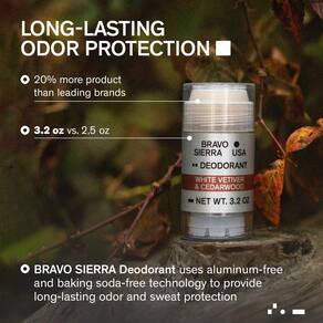 - Proteção de odor de longa duração: o desodorante Bravo Sierra usa tecnologia sem alumínio e sem bicarbonato de sódio para fornecer proteção duradoura contra odor e suor, mesmo nas condições mais exigentes. Nosso perfume autêntico é amadeirado com notas de vetiver branco e cedro. Pacote com 2.